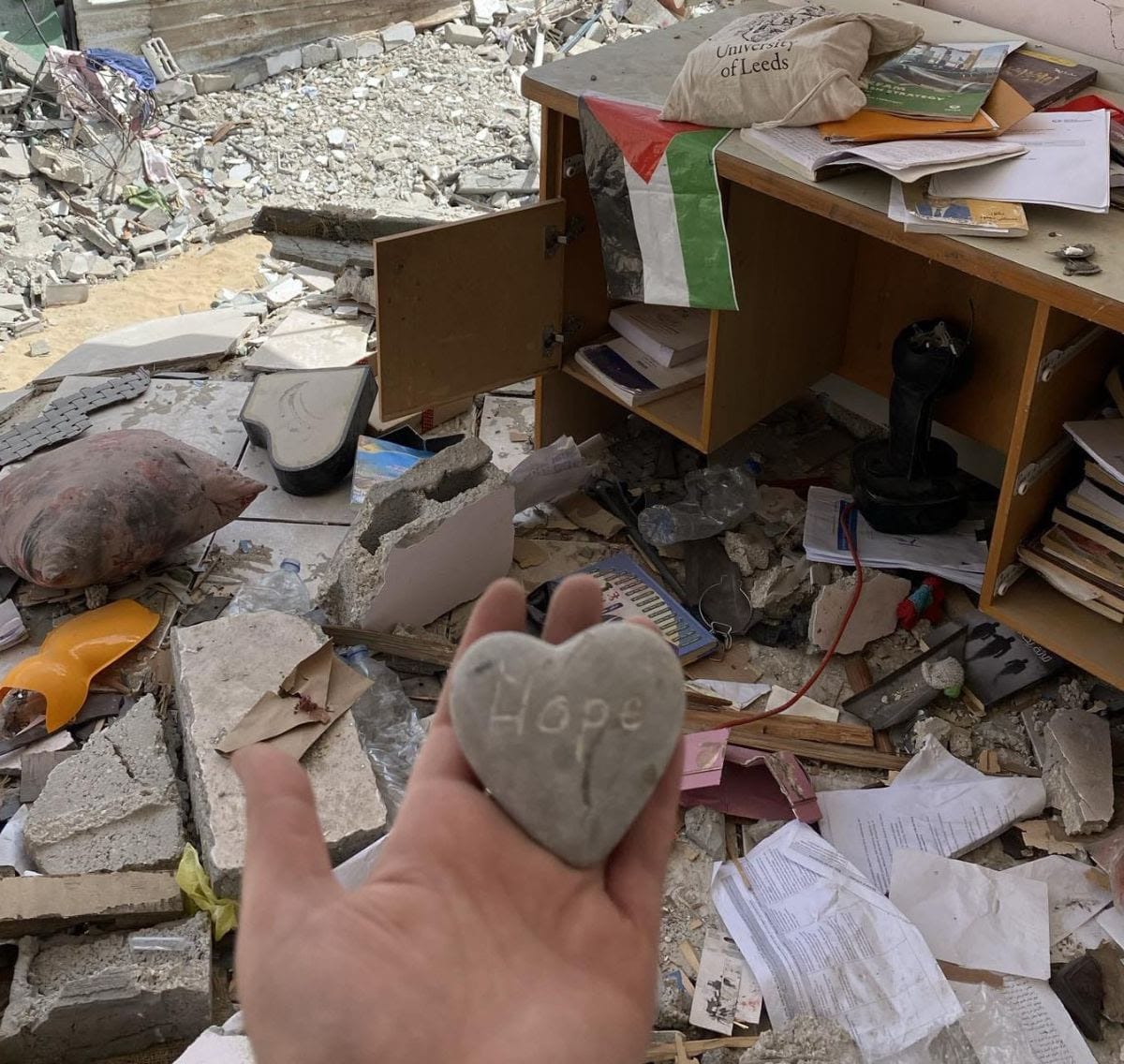 (A guest post by friends at Sabeel-Kairos)Can you see the ‘Hope Stone’ in this photo? Our membership officer Ruth gave it to her Gazan friend Mariam when she left Leeds